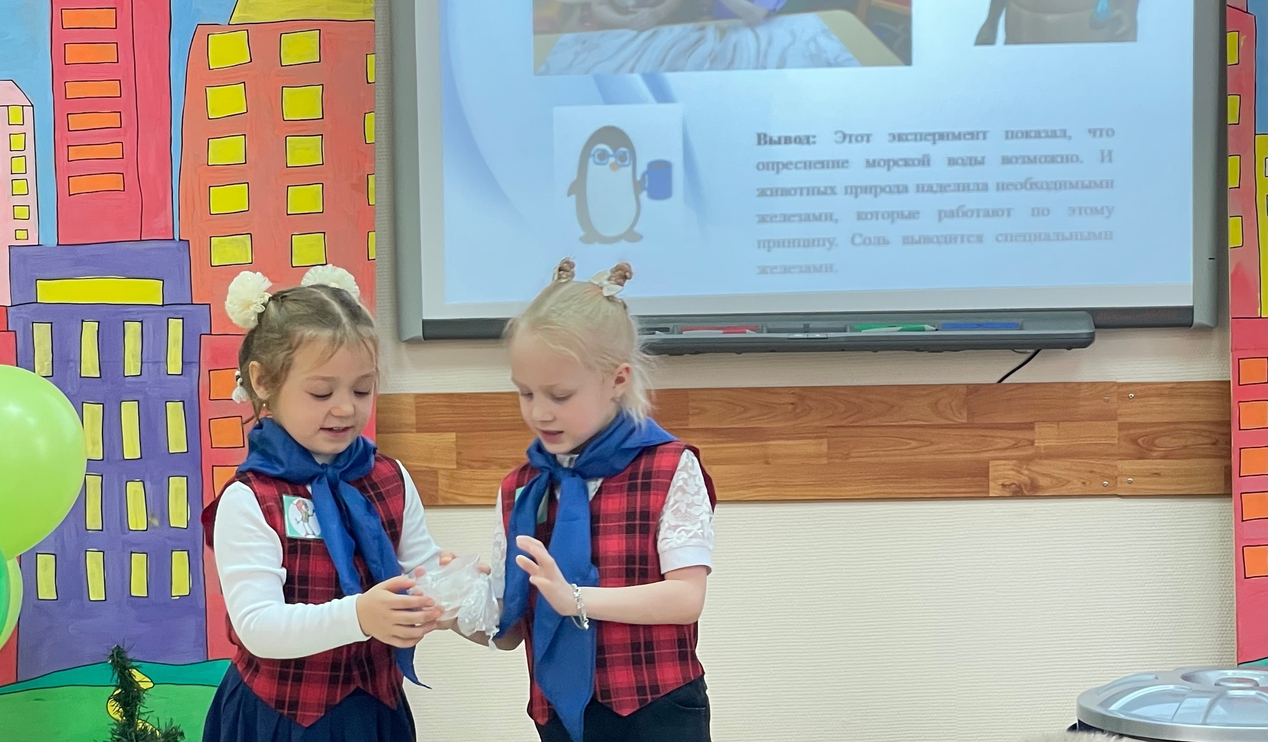 Наш детский сад представляли гр. 5 Замятина Екатерина, руководители Стародубова О.В. и Астраханцева С.А. с работой "Как очистить воду" и гр. 7 Ефимова Анна и Давыдова Полина и руководители Мутина Е. В. и Смирнова Е.В. с работой "Пингвины. Кто они?".
